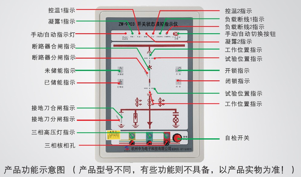 工作位置觸點(diǎn)閉合時,紅色垂直模擬條點(diǎn)亮,顯示斷路器位于工作位置;試驗位置觸點(diǎn)閉合時,綠色水平模擬條點(diǎn)亮,顯示斷路器位于試驗位置。