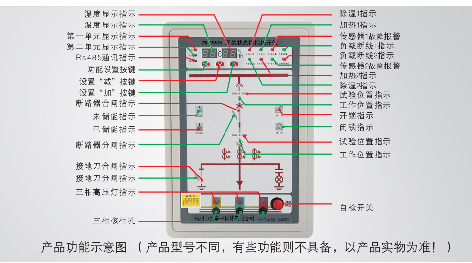 觸點(diǎn)閉合,紅色垂直模擬條點(diǎn)亮,表示接地合閘;觸點(diǎn)斷開,綠色傾斜模擬條點(diǎn)亮,表示接地?cái)嚅_。